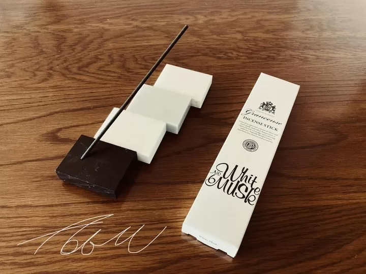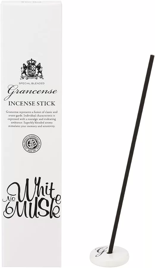 グランセンス インセンススティック ホワイトムスク 20g (約30本)(お香 香立て付 淡路島産 日本製 空気浄化 アロマ ベルガモットとミントの透明感ある香り)